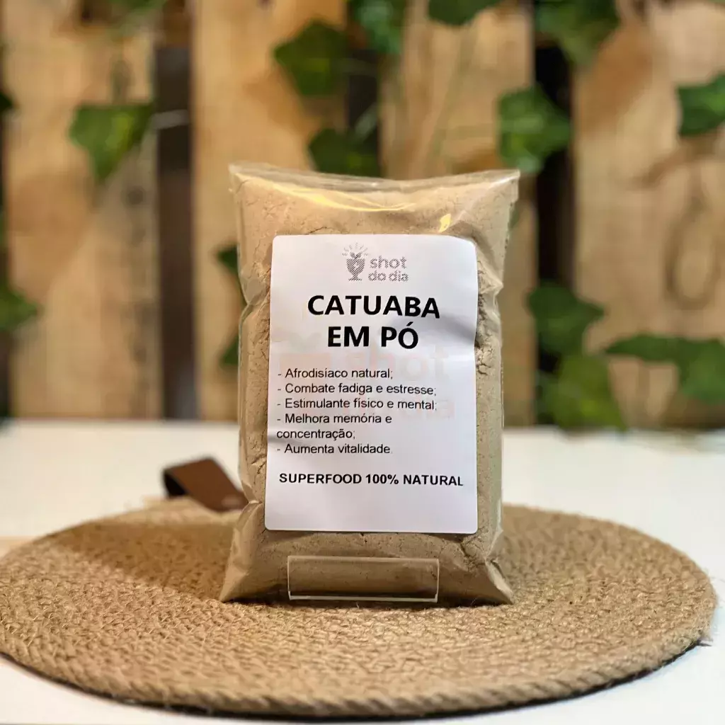 Catuaba em Pó 🔥 – afrodisíaco natural tradicionalmente utilizado na medicina popular brasileira para aumentar a vitalidade, melhorar o desempenho físico e mental e combater o estresse. Rica em compostos bioativos, a catuaba é um superfood que promove energia, concentração e bem-estar.